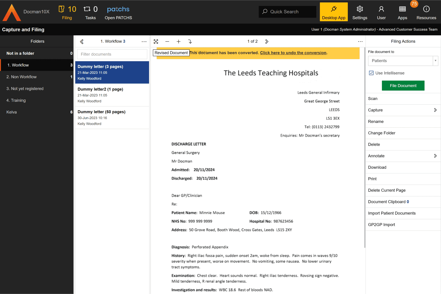 Working in conjunction with Docman10X, GP Workflow Assistant uses Artificial Intelligence (AI) to enhance the process of reviewing, actioning and coding clinical patient documents received by GP surgeries.