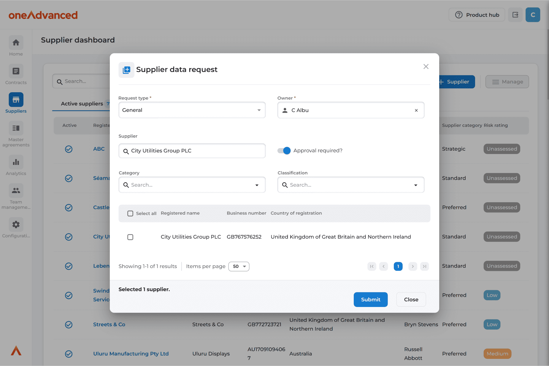 Consolidate supplier information, monitor performance, and assess risks with tools that enhance collaboration and compliance. With Supplier Management, you can simplify onboarding, track performance, and identify risks in one place. Our Supplier Management solution is combined with our Contract Management solution, providing complete visibility and control over both your suppliers and contracts in just 4 weeks.